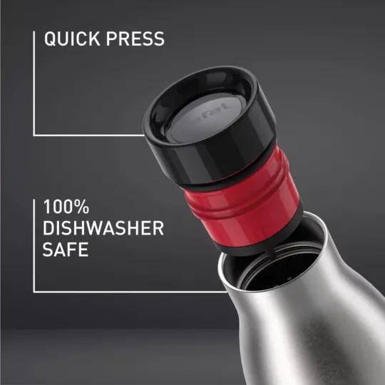 اختر الاستدامة دون الاستغناء عن الأناقة! تجمع زجاجة الشرب بلودروب من تيفال بين الشكل الجمالي المذهل والتصميم الصديق للبيئة، لتوفر زجاجة شرب قابلة لإعادة الاستخدام صُنعت لتدوم طويلًا. تمثل هذه الزجاجة الحل المثالي للمشروبات الساخنة والباردة على حد سواء، حيث صُنعت من الستانلس ستيل وتتميز بطبقة خارجية مطلية بمسحوق الطلاء وغطاء فريد بآلية الضغط السريع مع 360 درجة للشرب من أي زاوية.
