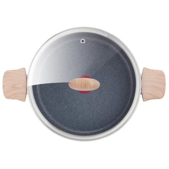 اكتشف الحلّة ناتيورال فورس من تيفال، والتي تعد جزءًا من مجموعة أواني الطهي الجديدة التي لا غنى عنها لطهي صحي كل يوم. تأتي ناتيورال فورس الجديدة، المستوحاة من الطبيعة، بطبقة طلاء مينراليا+ الجديدة فائقة المقاومة والمضادة للالتصاق، والتي تجمع بين المعادن الطبيعية والنتائج المقاومة للالتصاق، للحصول على طهي صحي بأداء صُمِم ليدوم طويلاً. أفضل ابتكارات تيفال لتكتمل بفضلها حزمة المزايا: تقنية ثيرمو سيجنال™ لتحمير مثالي وتقنية ثيرمو فيوجن+™ لطهي سريع ومتساوٍ. صُنع قدر 24 سم خصيصًا للطهاة الأصحاء ، وهو جزء من مجموعة ناتشورال فورس الجديدة من تيفال. المفتاح هو طلاء منيرالية + - أول طلاء تيفال المقاوم للغاية وغير اللاصق. يتم إثراء هذا الطلاء بمعدن سيليكات الكالسيوم المعدني الطبيعي ، والذي يكون قاسيًا مثل الحديد. يتم استخراج المعدن مباشرة من الأرض للحفاظ على خصائصه الطبيعية وضمان عدم استخدام أو إضافة أي مواد كيميائية أثناء عملية التصنيع. والنتيجة هي الأداء المطلق غير اللاصق الذي يوفر سهولة في الطهي باستخدام القليل من الدهون وتنظيف بدون عناء. تأتي السهولة الإضافية من إشارة تيفال ثيرمو سقنل ™ التي تتيح لك معرفة وقت وصول المقلاة إلى درجة حرارة الطهي المثالية. تقريب الميزات هو ثيرمو فيوشن + ™ الذي ينتج عنه طهي سريع ومتساوي. تضيف هذه المقلاة عالية الأداء لمسة صحية لطهي منزلك بفضل السطح عالي الجودة غير اللاصق الذي يضمن وجبات خالية من الدهون بنكهة لا تضاهى.
