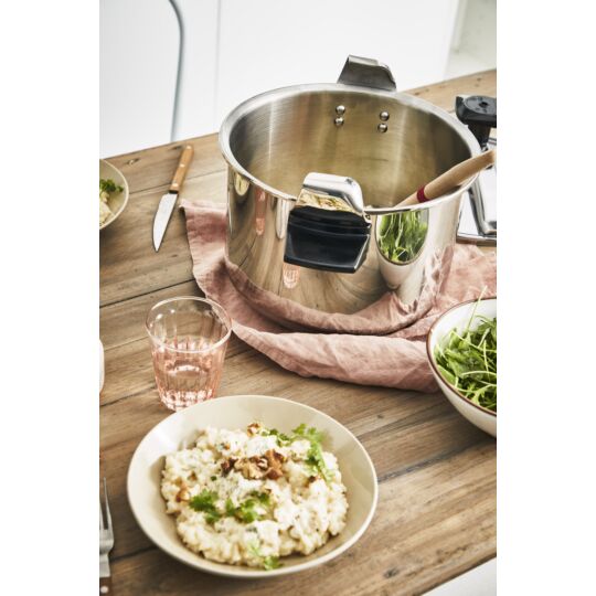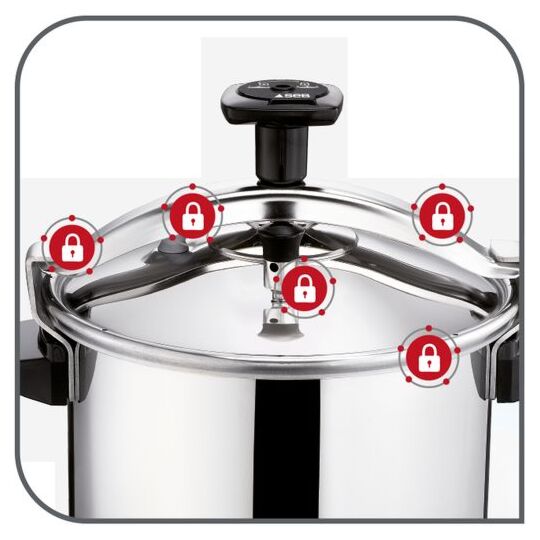 | Safety mechanisms | The lid can only be placed in one position—ensuring the pressure cooker starts cooking with a sealed and locked lid—while a pressure regulator valve adjusts the pressure |