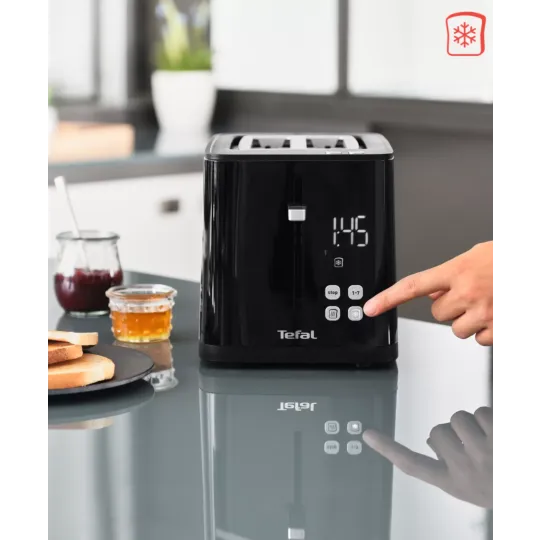 Streamline your kitchen with an intuitive, forward-thinking toaster that is as beautiful as it is functional. With the Tefal 2-slice toaster, enjoy bread toasted to perfection – just how you like it, thanks to easy-to-set favorites, a large digital countdown and seven browning levels. With convenient features and a simple yet modern design, delicious toast is just a touch away.