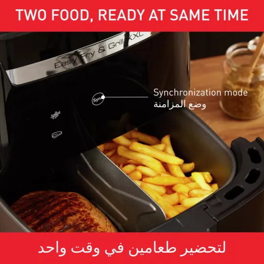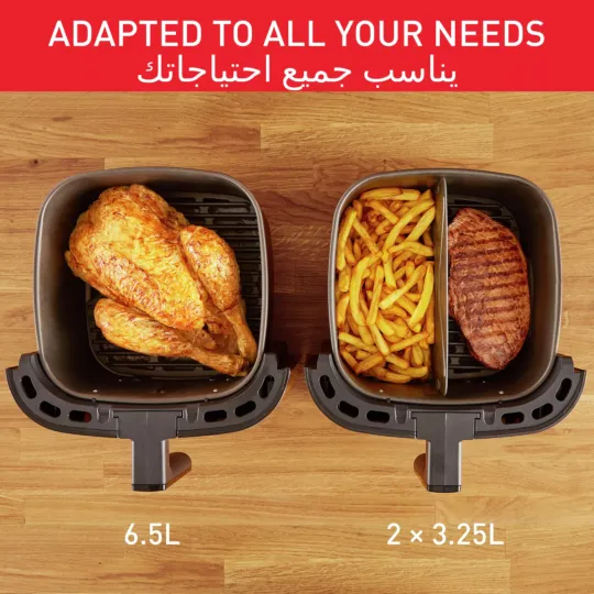 Delight your family with delicious, health-conscious meals from your own kitchen with the Tefal Easy Fry & Grill 2-in-1 Air fryer and Grill XXL. A removable Flexcook divider lets you easily switch from XXL capacity—that serves up to 8 people—to dual zones for cooking two different foods to be ready at the same time. Extra crisp frying technology and the die-cast grill ensure perfect searing that's crispy outside and tender inside with less oil. With 8 automatic programs, the possibilities are endless!