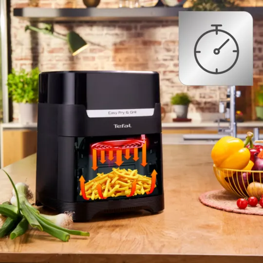 Enjoy health-conscious cooking with two appliances in one! Easy Fry & Grill 2-in-1 Precision combines an air fryer and grill for healthy frying with little to no oil, along with flawless grilling from the comfort of your kitchen. Its 8 automatic programs make perfect results a breeze, while its fast cooking makes it the ideal alternative to a classic oven.