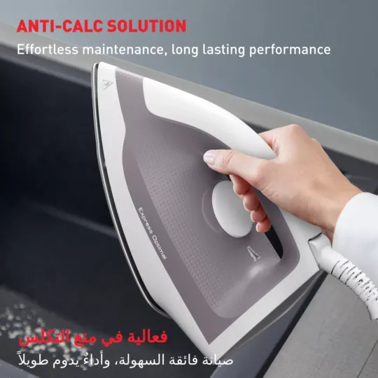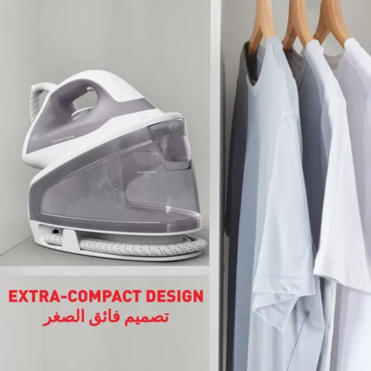 Discover Express Optimal, the perfect solution for all your garment care needs. This reliable steam generator iron delivers powerful performance and up to three times more steam than a traditional steam iron*—a 5.3-bar pump, a continuous steam output up to 110 g/min., and a powerful 250 g/min. steam boost—with features like Calc Clear technology for effortless maintenance and a high-performance Xpress Glide soleplate. All this, in an ultra-compact frame for total convenience.