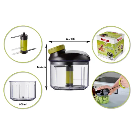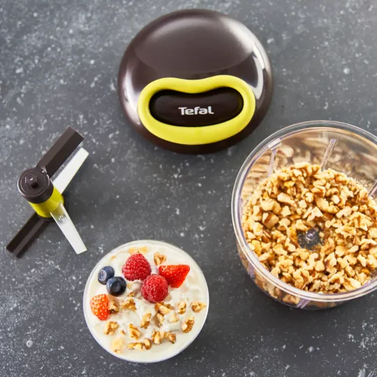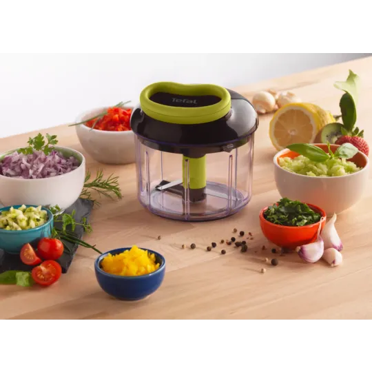 Preparing tasty recipes at home is now easier than ever thanks to the Tefal 5-Second Chopper—the simplest and fastest way to chop any kind of food down to the exact size you want in just seconds! From onions, herbs and nuts to vegetables, this manual food chopper offers perfect results made easy, with independent stainless steel blades ensuring efficient cutting results in no time.