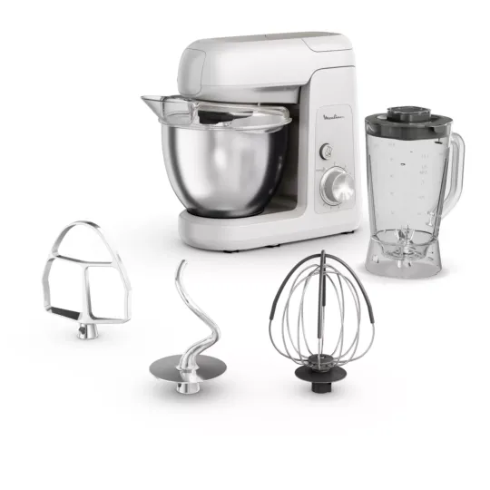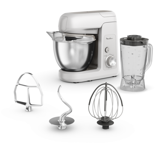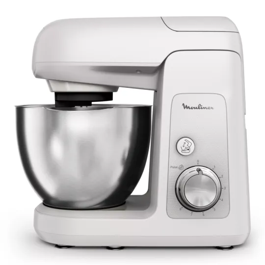 Delivering flawless mixing, whipping and kneading that's built to last, Moulinex Bake Partner is the kitchen machine designed to met all your needs in the kitchen day after day. A powerful 1100 W motor is the key to perfect results every time, with a planetary movement that reaches every part of the bowl for smooth and homogenous mixing. Discover a generous 4.6 L capacity for preparing large quantities for friends and family, including up to 10 egg whites, 40 cupcakes or 3 large pizza doughs!