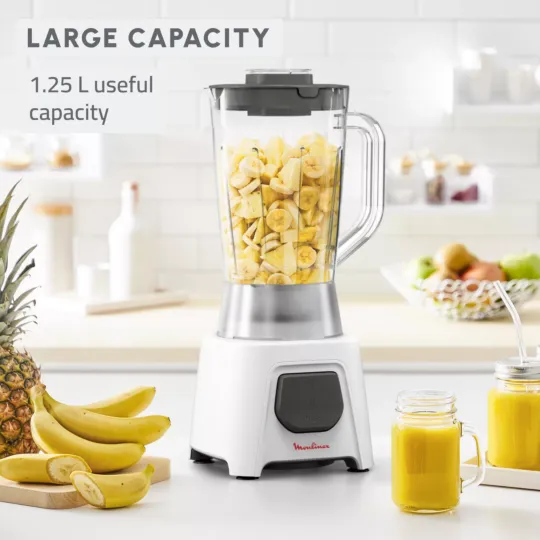 From smoothies to soups and much more, Moulinex Blendeo makes blending fast and easy. Designed with a large capacity and powerful motor, this versatile kitchen blender offers one speed and a pulse function for perfect chunk-free results and crushed ice in under a minute! It's also equipped with smart features: extra-resistant blades, our easy-locking system for effortless cleaning, and air cooling technology to prevent overheating.