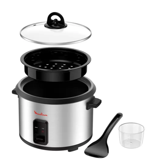 A mechanical rice cooker for your daily needs. Modern stainless steel housing design with glass top lid. Non-stick coated removable bowl.