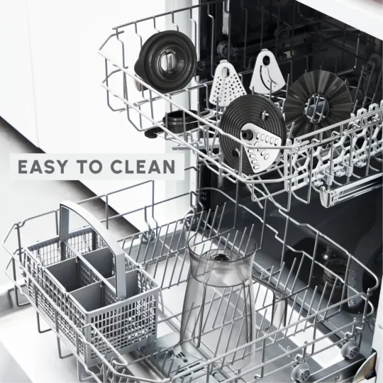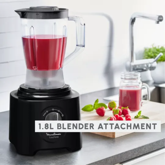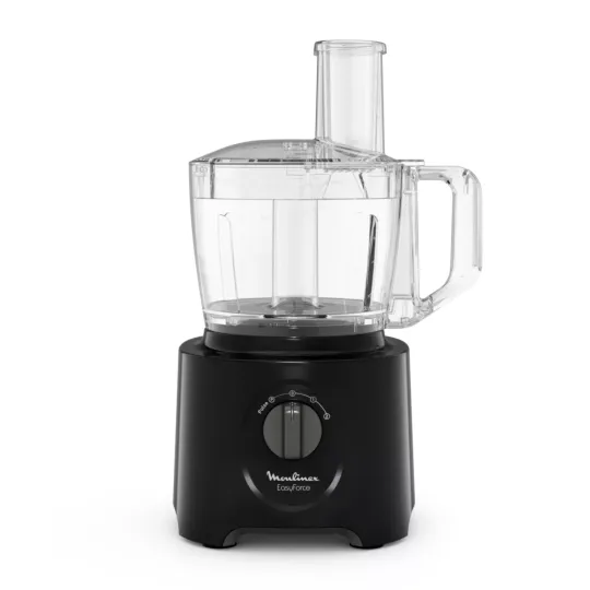 Moulinex Easy Force: The food processor offering endless possibilities and perfect results every time. Discover a full culinary package with six attachments offering 25 different functions including slicing, shredding, grating and so much more—along with the blender for perfect smoothies and shakes. With speed settings on the side of each attachment and a variety of user-friendly features, Easy Force is the ideal first food processor.