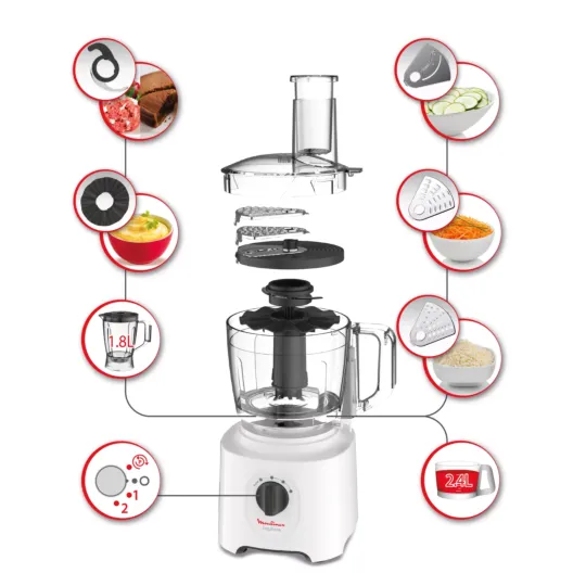 Moulinex Easy Force was designed as the perfect first food processor for beginners, to help you achieve great results easily. Discover an all-in-one food processor with 6 high-quality attachments offering a range of over 25 different functions, for delicious results in no time.