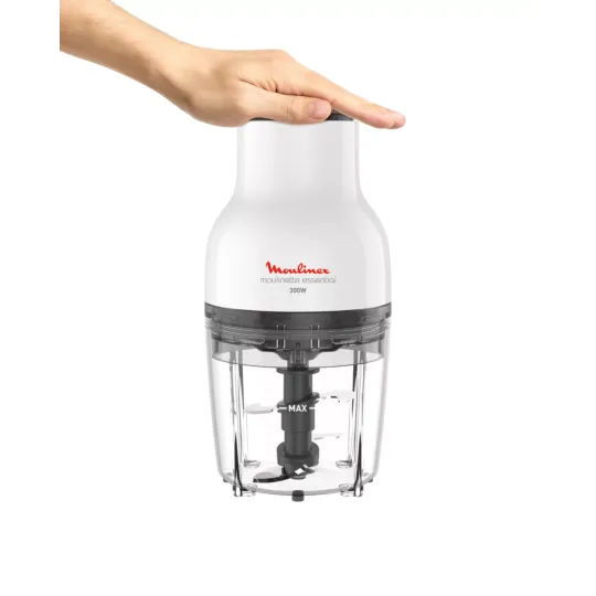 With it's 4 sharp blades, the Moulinette Essential can effortlessly mince, chop and mix all kind of ingredients. A simple pressure on the top for easy and quick results. The device is also easy to clean, with it's smoother surface and removable parts, and also easy to store.