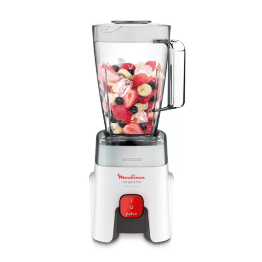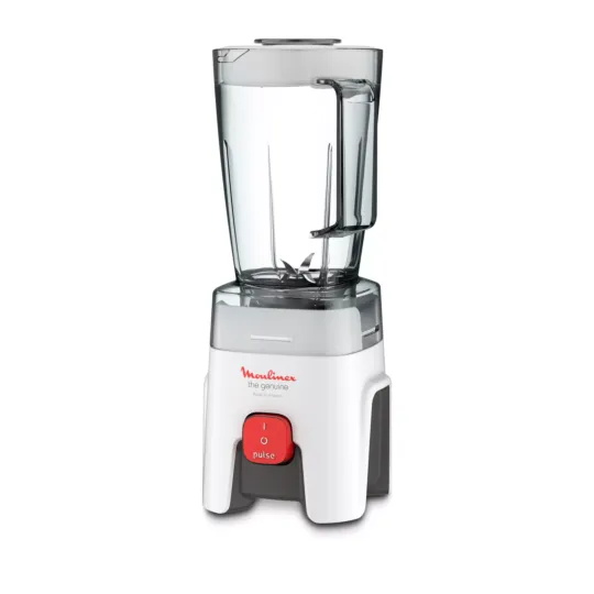 With the Moulinex Genuine kitchen blender, enjoy total convenience and fast, even results on all your blending needs, from juices and smoothies to soups and sauces. Durable, robust and made to last, it's designed and manufactured in France, for a guarantee of quality and excellence!