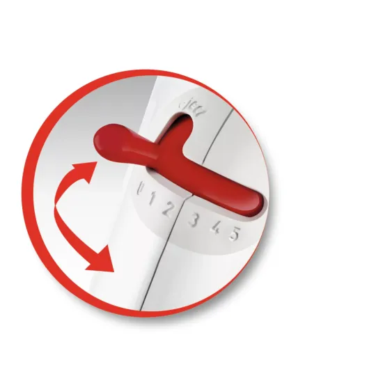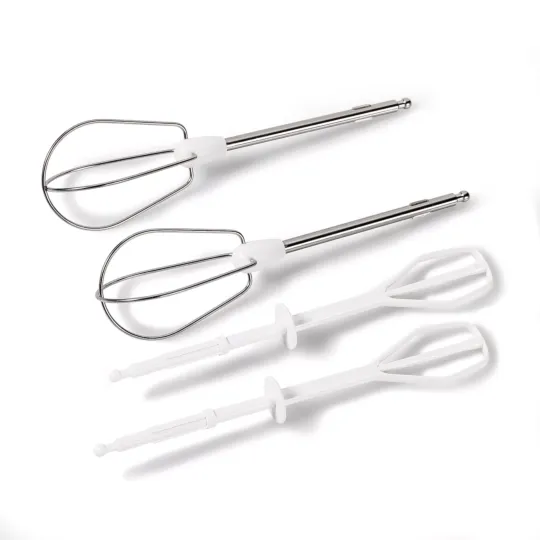 Thanks to its 200W and 5 speeds, easily beat egg whites and whip cream using the 2 sets of whisks (plastic and stainless steel) included.