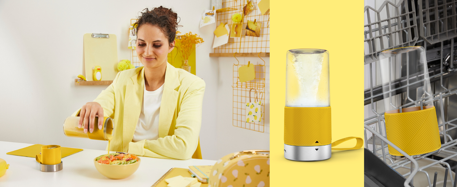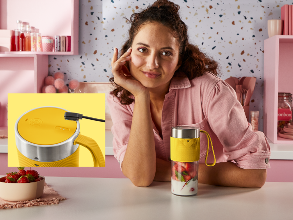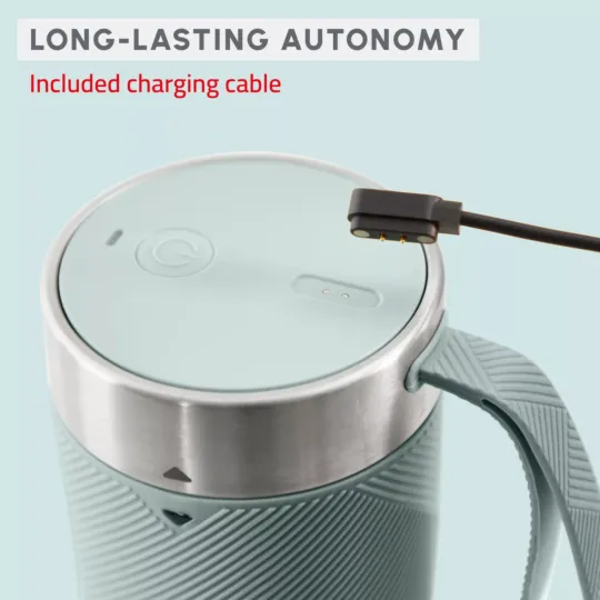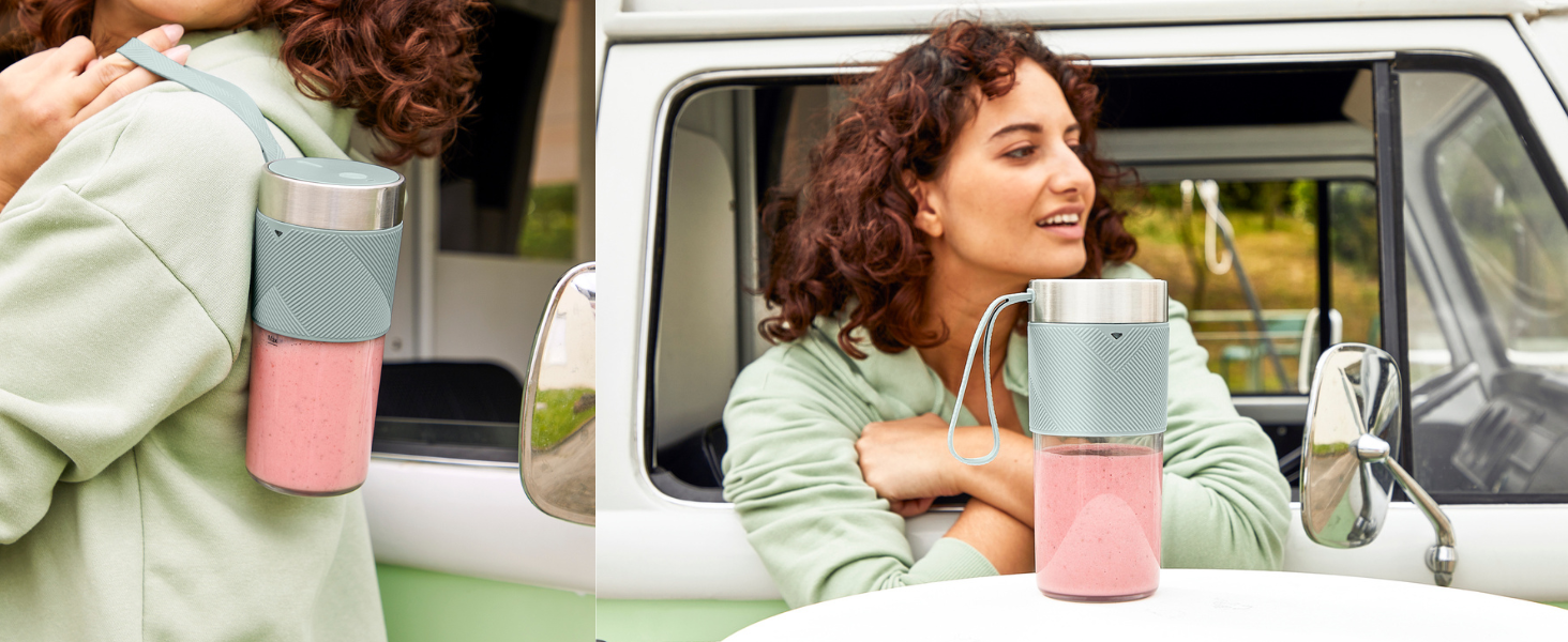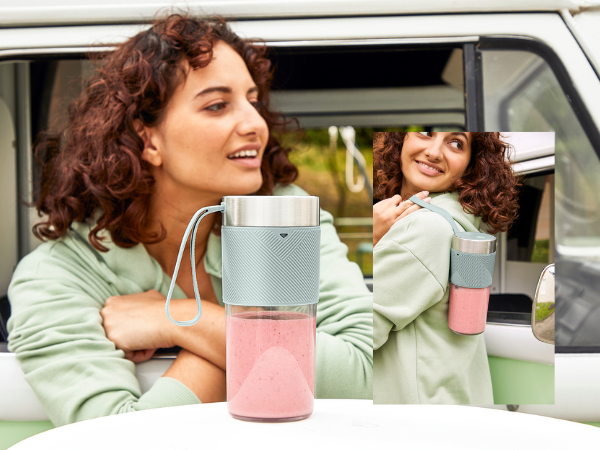 With the Lightmix portable blender, fresh smoothies, shakes and more are just a press away. Its powerful yet quiet design delivers outstanding results in just 40 seconds, perfect for everything from cold soups and dips to sauces and dressings bursting with vitamins and nutrients. And all this in a durable, leak-proof design. Simply add ingredients with a little water or milk, then press the ON button twice—that's all there is to it! Take it anywhere, for a healthier lifestyle on the go.