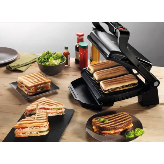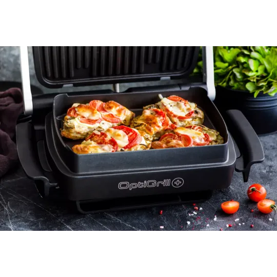 Perfect grilling results from rare to well-doneOptiGrill+ Snacking&Baking, our ultimate innovation includes a snacking & baking accessory which provides endless possibilites for baking, heating/reheating or browning. Featuring "Automatic Sensor Cooking" technology, time and temperature are automatically adjusted to the thickness and number of items placed on the grill, based on 6 cooking programs (Burger, Poultry, Sandwich, Sausage, Red meat, Fish) and a frozen food mode. At the same time, an indicator light allows direct monitoring: Purple for preheating, blue then green at the start of cooking, yellow when the food is rare, orange for medium and red for well-done. Perfectly adaptable to everyone's tastes, simply lift up the lid to pick up your meat when it's ready and leave the rest to carry on cooking! The additional manual mode with 4 adjustable temperature levels allows you to cook anything and is perfectly adapted to fruits and vegetables, cooking them just the way you want