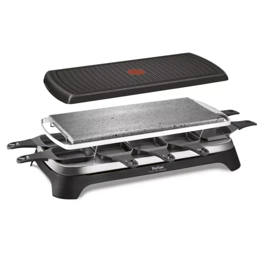 Raclette Pierrade® 3-in-1 is a raclette, grill/plancha and Pierrade® all in one! Discover a refined Raclette with 10 non-stick pans for fun parties with friends! Or use it as a grill if you wish, for total convenience and versatility. Easy to store thanks to its detachable power cord, this easy-to-use appliance features the Thermo-Spot® heat indicator, which lets you know the perfect moment to start cooking. Raclette Pierrade® 3-in-1: a practical and elegant raclette to share your meals with family and friends.