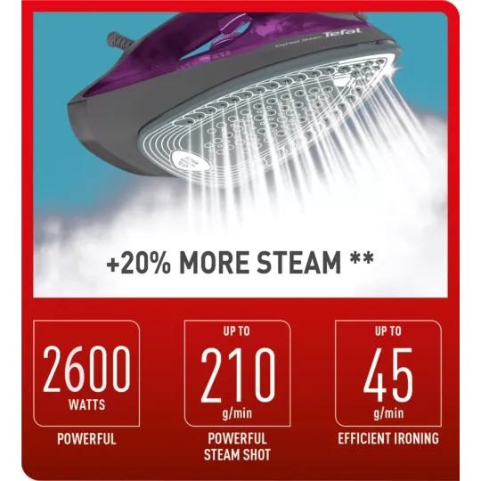 Design to deliver quick and long lasting performance, Powergliss will help you tackle your ironing tasks in no time. Equipped with 2600W of power along with up to 210g/min of steam boost for efficient ironing, it also comes with a durable Ceramic soleplate and a large water tank for stress-free ironing sessions.