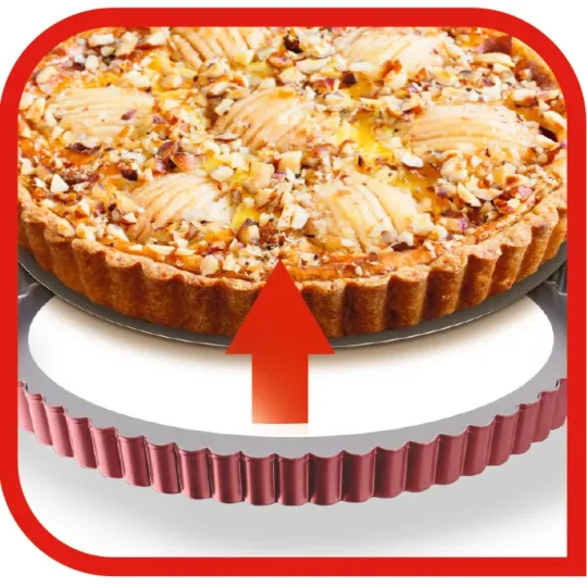 The Tefal Delibake Tart Pan promises the sweet taste of success for even the most delicate creations. Equipped with a high-performance non-stick coating, this versatile cake pan ensures flawless release and effortless clean-up that makes baking a breeze—and lets your creativity soar. The finishing touch: an oversized base that doubles as a serving plate for total convenience.