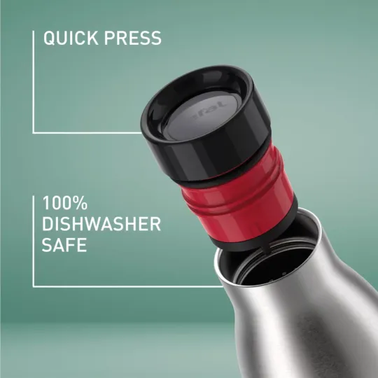 Choose sustainability without foregoing style! With the TEFAL BLUDROP Drinking Bottle, stunning aesthetics merge with an environmentally friendly design—for a reusable drinking bottle that's made to last. Crafted from stainless steel and featuring a silicon sleeve or powder coating and a unique Quick-Press lid with 360° drinking, it's the perfect solution for hot and cold drinks alike.