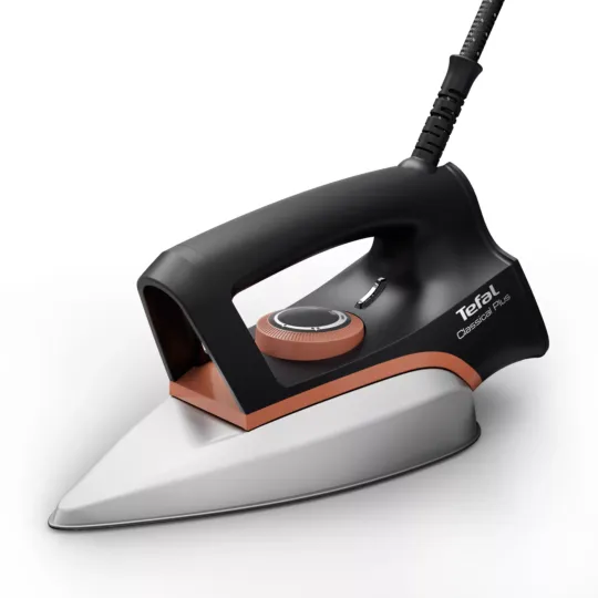 The Tefal Classical Plus <strong>Dry Iron</strong> was designed to make home garment care effortless. Discover all the advantages of a dry iron, with 1200 W of power for a fast heat-up and a smooth-gliding soleplate. Three temperatures cover all your garment care needs, with convenient features to round off the package: a lightweight design that's only 604 g in hand, a long 1.8 m cord, ergonomic 360° swivel movement and much more.