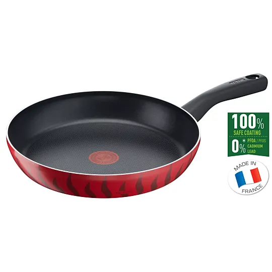 Tefal Tempo Flame is an easy-to-use frypan designed to meet your everyday cooking needs. The new Thermo-Signal™ system lets you know the ideal temperature to start cooking, for perfect results with total ease, while a new easy-to-clean Titanium coating provides extra glide for longer. Designed to make generous portions bursting with flavor, Tempo Flame is equipped with a comfortable handle for an easy grip and a deep shape for meals hearty enough to satisfy the entire family. It's compatible with gas, electric and ceramic stovetops. From restaurant-quality sole meunière to rib-eye steak seared to perfection, the choice of pan can make all the difference. Discover a frypan designed to take your culinary game to the next level.