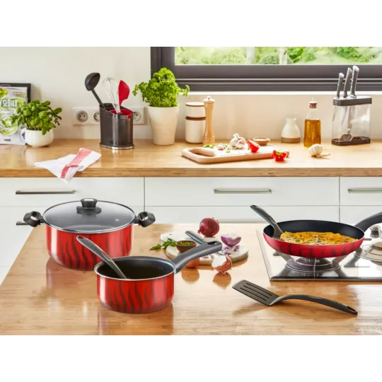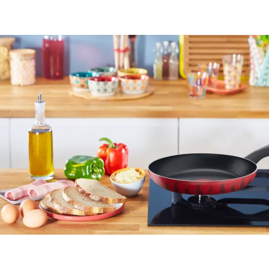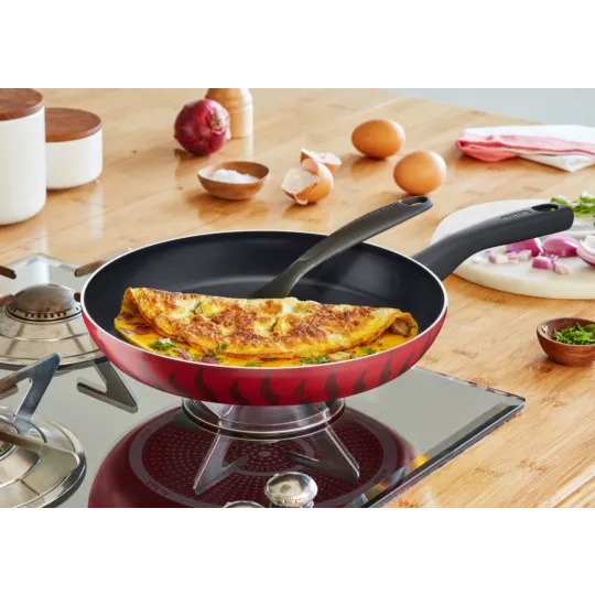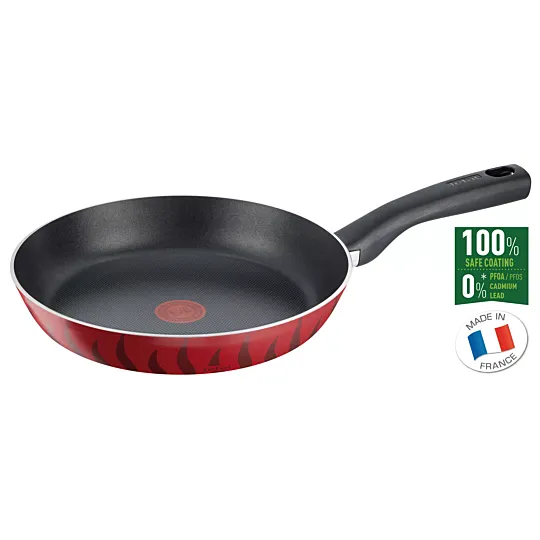 Tefal Tempo Flame is an easy-to-use frypan designed to meet your everyday cooking needs. The new Thermo-Signal™ system lets you know the ideal temperature to start cooking, for perfect results with total ease, while a new easy-to-clean Titanium coating provides extra glide for longer. Designed to make generous portions bursting with flavor, Tempo Flame is equipped with a comfortable handle for an easy grip and a deep shape for meals hearty enough to satisfy the entire family. It's compatible with gas, electric and ceramic stovetops.