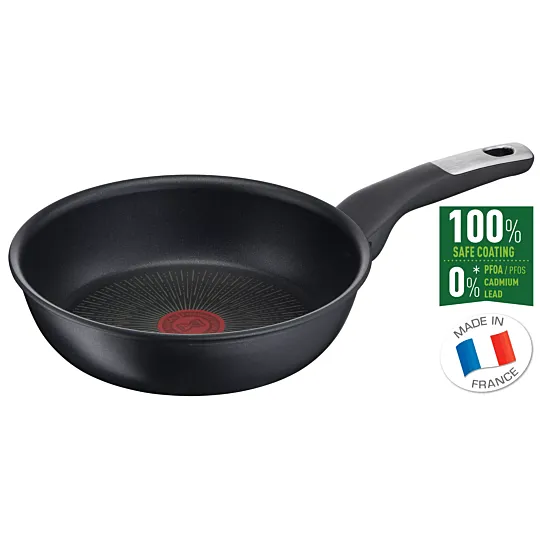 The unmistakable sizzle of chicken tossed into the pan, the clatter of utensils, the quick slide of a spatula at just the right moment... Extreme cooking calls for a frying pan that can withstand extreme conditions. Bringing together the all-new TITANIUM ANTI-SCRATCH coating—offering outstanding non-stick durability that can withstand even metal utensils—with an extra-thick THERMO-FUSION™ + base, the Tefal Unlimited frypan takes cooking performance to a whole new level.