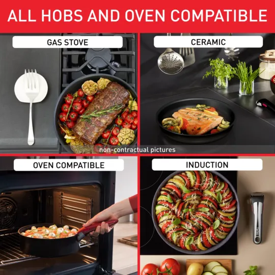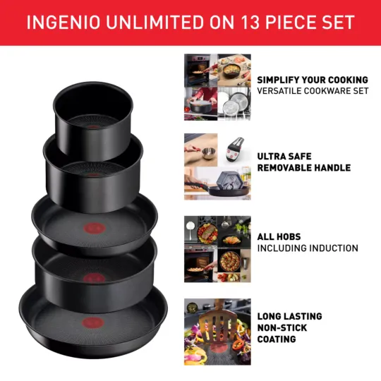 Looking for a way to simplify your cooking? A removable handle for pans to go from stovetop to oven to fridge (do not store acidic food) like magic? Check. A stackable design to save space in the kitchen? You got it. Ingenio: simplify your cooking! Extreme cooking calls for pans that can withstand extreme conditions. Bringing the all-new TITANIUM ANTI-SCRATCH coating, offering outstanding non-stick durability that can withstand even metal utensils, Tefal Unlimited On pans take cooking performance to a whole new level.