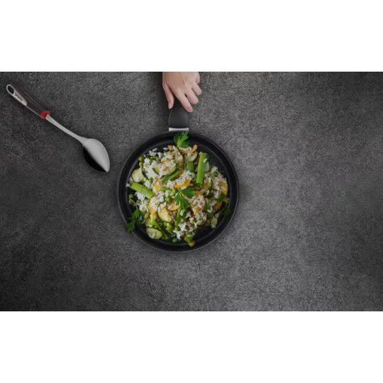 The unmistakable sizzle of chicken tossed into the pan, the clatter of utensils, the quick slide of a spatula at just the right moment... Extreme cooking calls for cookware that can withstand extreme conditions. Bringing together the all-new TITANIUM ANTI-SCRATCH coating—offering outstanding non-stick durability that can withstand even metal utensils—with an extra-thick THERMO-FUSION™ + base, the Tefal Unlimited sautepan takes cooking performance to a whole new level.
