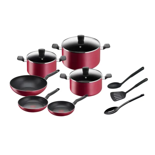 Tefal Super Cook pots and pans are ideal for beginners seeking delicious results every day. This easy-to-use set features a wokpan and stewpots—compatible with all stovetops excluding induction—designed to elevate your cooking to its highest potential. The new Thermo-Signal™ system lets you know the ideal temperature to start cooking, for perfect results with total ease. Our durable Titanium non-stick coating comes together with ergonomic design for the ultimate beginner's cookware set.