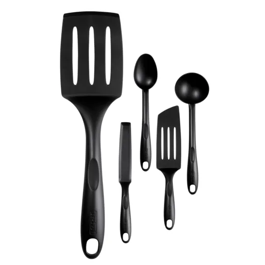 Tefal BIENVENUE utensil design and convenience makes cooking easier everyday. BIENVENUE tools are resistant up to 220°C and do not scratch non-stick coatings. Thanks to BIENVENUE, Set of 5 essential tools (spoon, ladle, angle spatula, long spatula and pancake spatula ) you will have everything you need with the best quality to cook and serve delicious dishes.