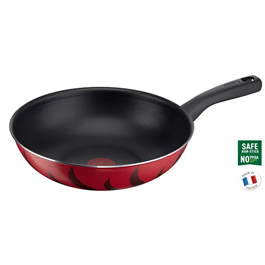 Tefal Tempo Flame is an easy-to-use wokpan designed to meet your everyday cooking needs. The new Thermo-Signal™ system lets you know the ideal temperature to start cooking, for perfect results with total ease, while a new easy-to-clean Titanium coating provides extra glide for longer. Designed to make generous portions bursting with flavor, Tempo Flame is equipped with a comfortable handle for an easy grip and a deep shape for meals hearty enough to satisfy the entire family. It's compatible with gas, electric and ceramic stovetops. Experience the satisfying sizzle of sautéing over high heat and flawlessly flipping ingredients, for Asian delicacies cooked to perfection every time: homemade pad Thai, aromatic curries, miso-glazed chicken, crispy panko-crusted pork loin, and so much more.