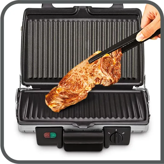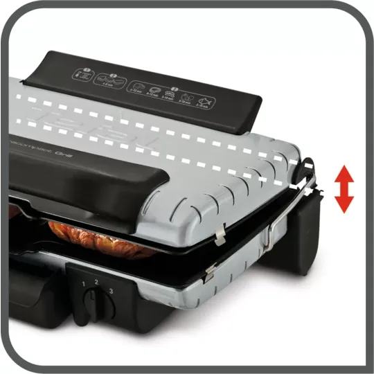 Compact and versatile grillingThe Ultracompact range provides a compact solution to grill all kinds of food on its grill or barbecue position, with no added fat or oil. Adjust to your preferences with its 3 position thermostat for maximum control. Easy to clean thanks to diswasher-safe removable parts and non-stick coated plates, Ultracompact Grill can be stored vertically to take minimum space in the kitchen.