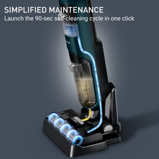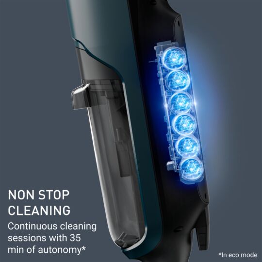 2-in-1 cleaning: Introducing the Tefal X-Clean 2 Wet & Dry Vacuum Cleaner. This 2-in-1 washes and vacuums solid and liquid waste 2x faster* thanks to ECO and MAX modes. The lightweight and self-propelled design offers smooth cleaning. The single-edge cleaning brush and optimized water flow ensure effective floor cleaning and faster drying. Launch the 90-second self-cleaning cycle in one click for an always-clean brush.