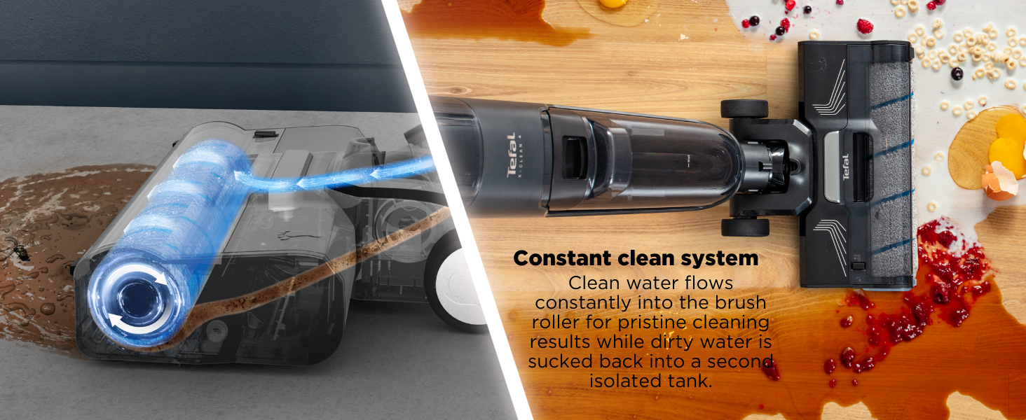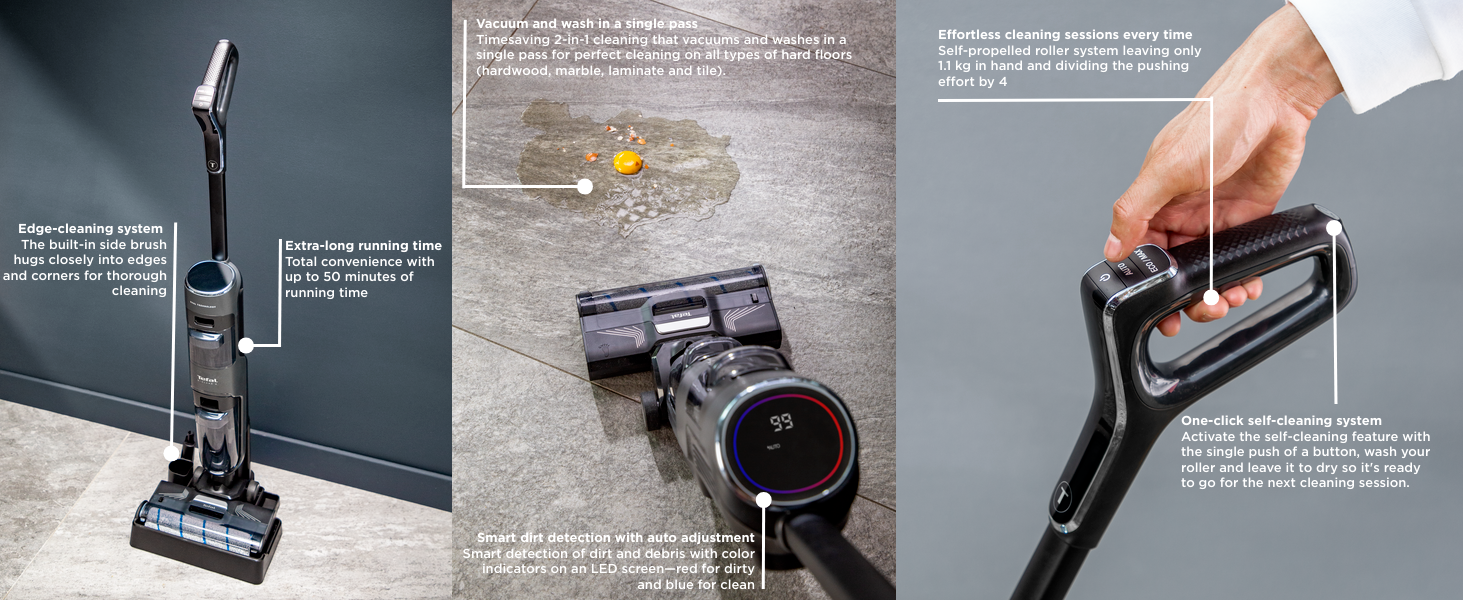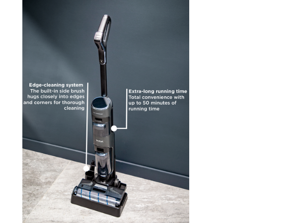 With 2-in-1 deep-cleaning action for perfect results in half the time, X-Clean 4 by Tefal is the home cleaning solution for a spotless home made effortless. This timesaving wet dry cordless vacuum comes equipped with cutting-edge technology and features for an improved cleaning experience: Smart dirt detection and auto power adjustment, an extra-long running time up to 50 minutes to cover up to 350 m² of surface* with a single charge, self-propelled cleaning and so much more.