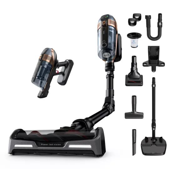 Delivering robust dust pick-up performance with ultimate flexibility, Tefal X-Force Flex 15.60 offers a modern cleaning X-perience like no other! This cordless stick vacuum cleaner offers the full package: High suction power up to 230 Air Watts*, a removable battery with up to 1h20 minutes of runtime**, automatic suction power adjustment by floor type for optimized results, Flex Technology for an improved reach under low furniture without having to bend over, and so much more.
