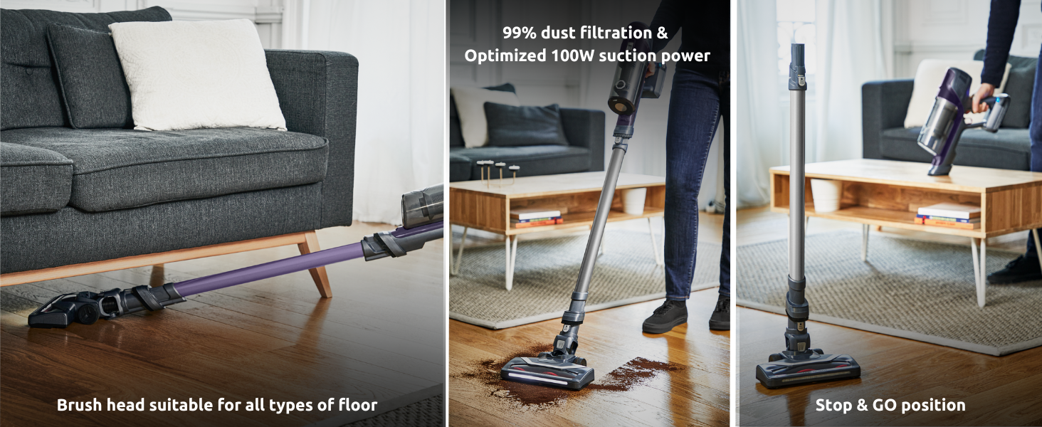 | Accessories | Wall-mounted charging base Crevice device Sofa brush Two integrated easy brushes |