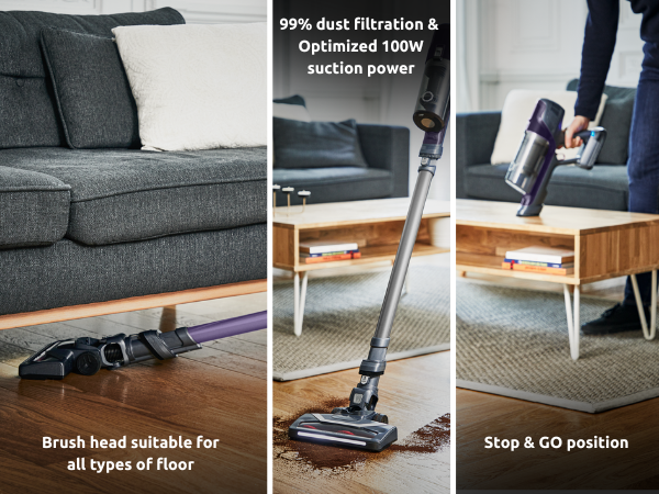 The Tefal X-PERT 6.60 cordless stick vacuum cleaner delivers a game-changing cleaning experience, with a motorized brush head complete with LED lights and cutting-edge technology for effortless cleaning results. A long-lasting 45-minute battery comes together with easy settings—automatic ECO and SURFACE speeds, along with the BOOST trigger function for all your deep-cleaning needs—to offer a lightweight and portable cleaning solution for a spotless home in no time.